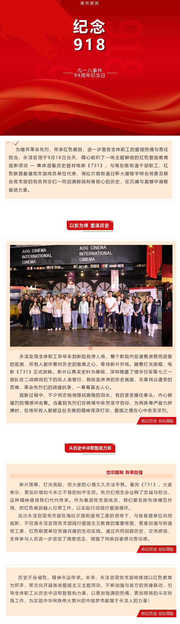 永泽咨询开展以光影回望历史伤痛,用初心传承爱国精神为主题的红色观影活动